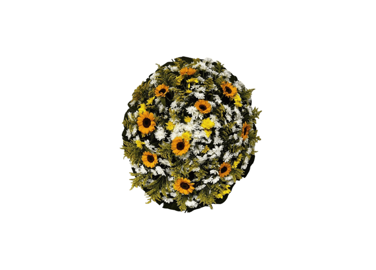 Essa coroa de flores de Girassol é uma linda homenagem para pessoas de espírito alegre, que irradiaram luz em vida, ou para expressar a gratidão e a admiração por um legado luminoso. É um arranjo que celebra a vida vivida e a lembrança que aquece o coração.